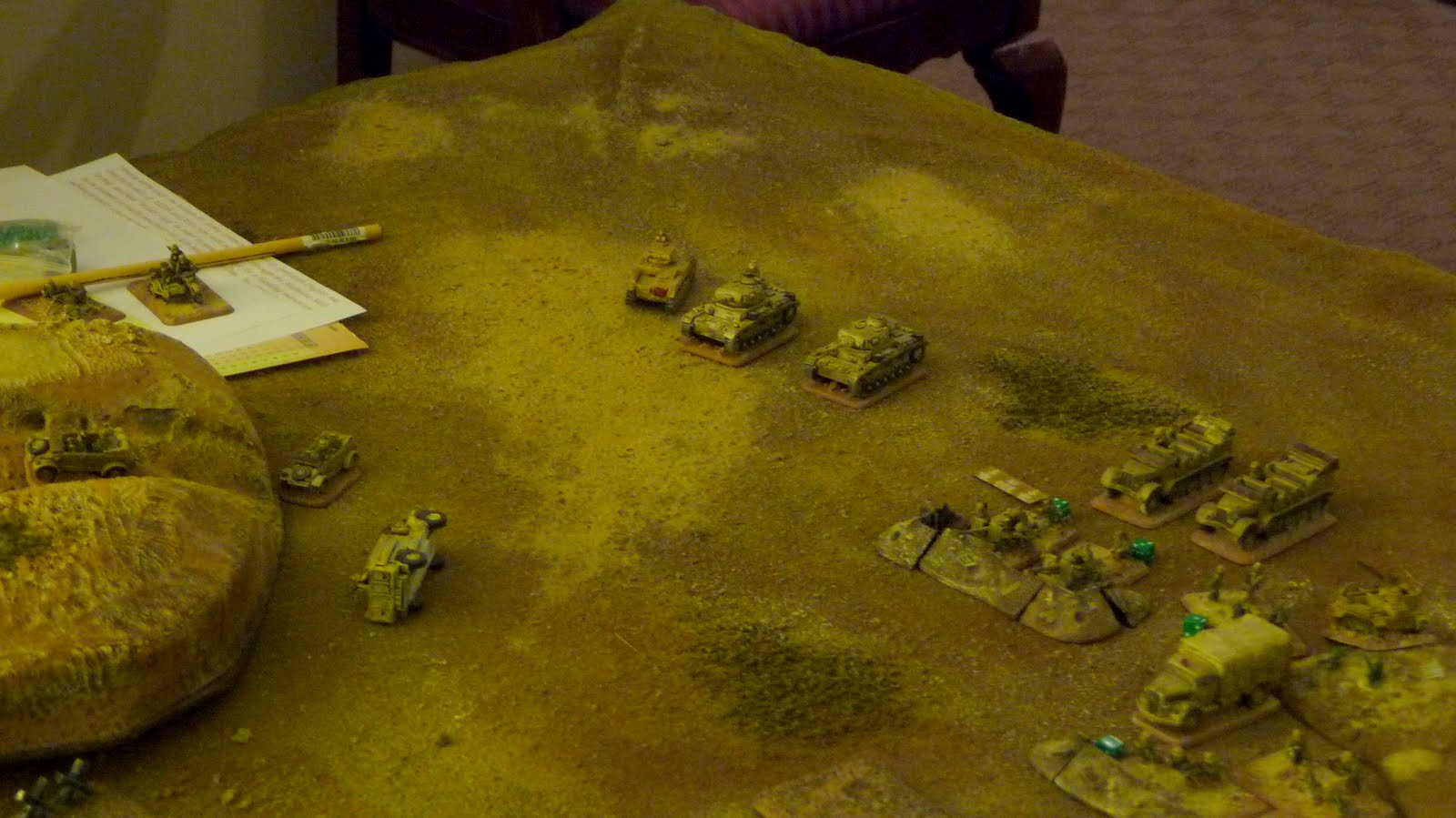 The game started in the early morning, here we can see the sun rise from the DAK position.The LRDG rapidly advanced in order to spot the DAK positions. The 8th Army led with their tanks and AFV's with their infantry in close support.