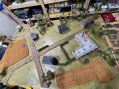 I felt I had a bit better chance of winning this game, it was going to be quite difficult for the marines to capture the JOP in the radio station. I really had to focus on getting a morale victory. As part of the game setup I got a free bunker, I wished it had been an entrenchment as I had to place it on the table pre-game, losing me an advantage in choice once a target had emerged.